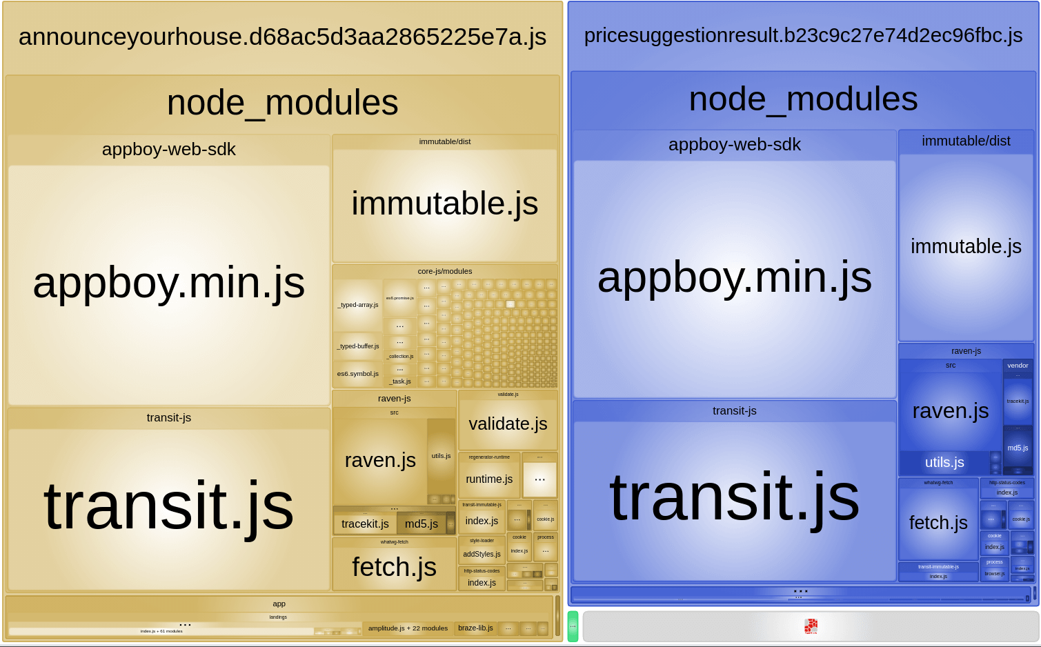The first things that got our attention were the appboy.min.js and the transit.js libraries. The appboy is the Braze, a library we use for communication, and the transit is a library to transform JSON format data into our app state.