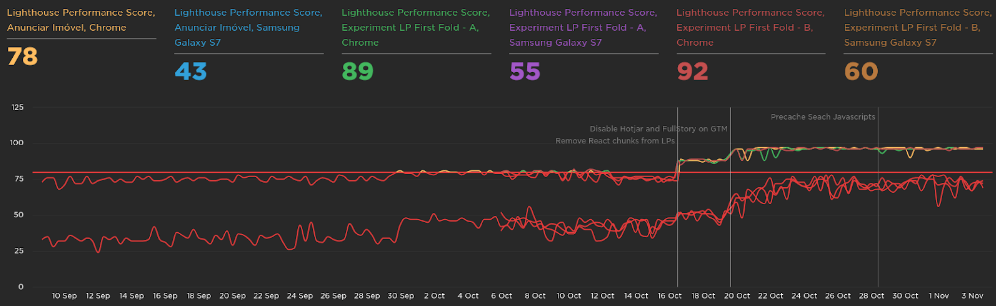 As we saw in the metrics section, we had set up the Speed Curve to track the performance of some pages in all this journey. So, for every improvement we made in our application, we keep track of the metrics in these tools.