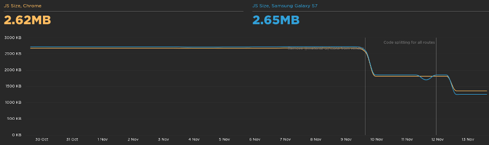 As expected, we saw a huge improvement in the JavaScript size: -1.43 MB